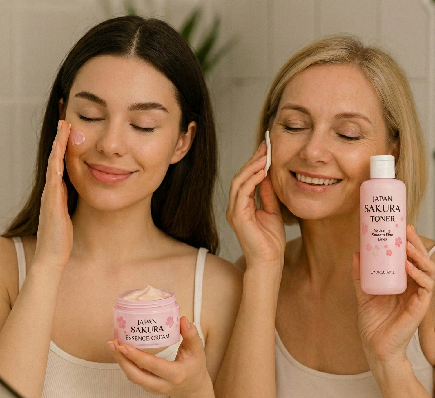 Grâce aux extraits de fleur de Sakura, à la vitamine C, à la niacinamide et à l’acide hyaluronique, la routine aide à hydrater en profondeur, lisser le grain de peau, réduire taches & imperfections, et repulper la peau.